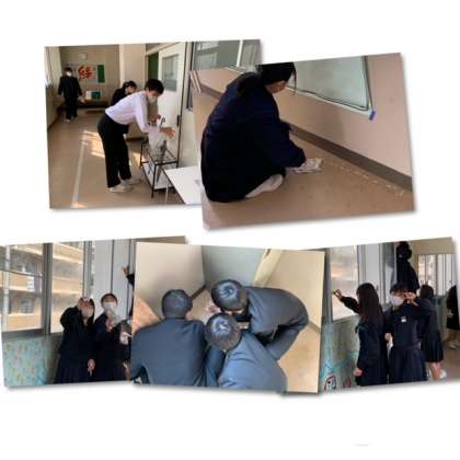 教室の掲示物を外し、丁寧に窓を拭き、廊下は雑巾がけもしました。