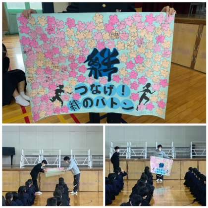 74期生を代表して、3年担当教師から応援メッセージが手渡されました。