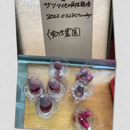 スーパーで買ったサツマイモから苗を栽培します。少し時間がかかります。