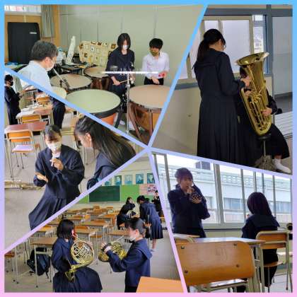 部活動紹介で生演奏を披露した吹奏楽部、たくさんの一年生が参加していました。