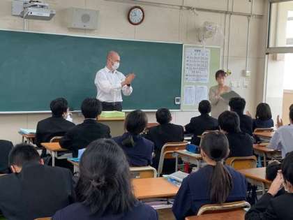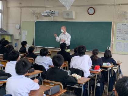 「聞く話す」ことに慣れ親しむ英語の授業です。(1年3組)