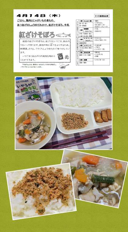 また、今日はご飯に紅ざけそぼろをまぶして食べます。美味しかった。