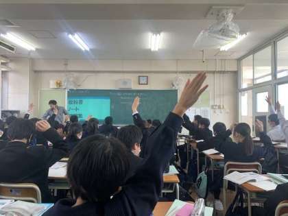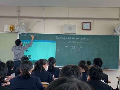 一緒に学ぶことの面白さを実感させる授業でした。生徒に学習課題を深く理解させるための「めあて」を生徒全員の復唱からスタート。