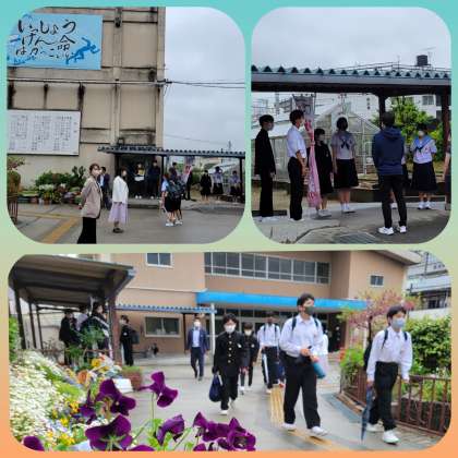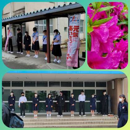 生活委員と生徒会は、そんな天候を考慮しひさしのあるところからのあいさつです。