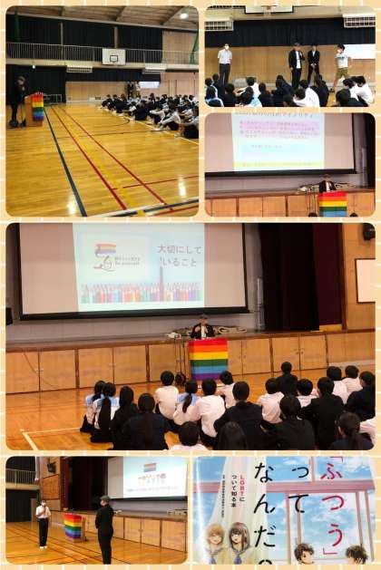 昨日の多様な性についての学習を受け、いろいろ考えることができたようで、図書室では関連の本を手に取っている2年生の姿を見かけました。自分にとっての「ふつう」はみんなにとっての「ふつう」ではないですし、あなただけの「ふつう」があってもよい。いろんな考え方やモノの見方を知り、受け入れていけるようになっていきたいですね。