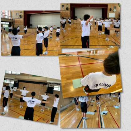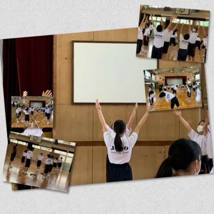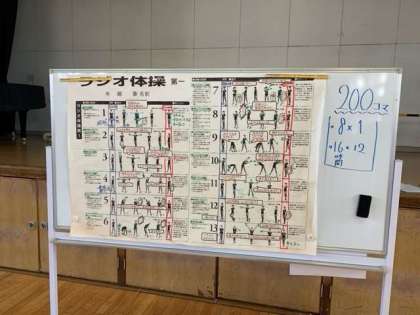 ラジオ体操の動作を確認します。