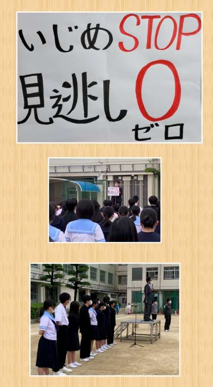 生徒指導主事からは、大阪市のスローガン「いじめSTOP見逃し0(ゼロ)」についての指導がありました。