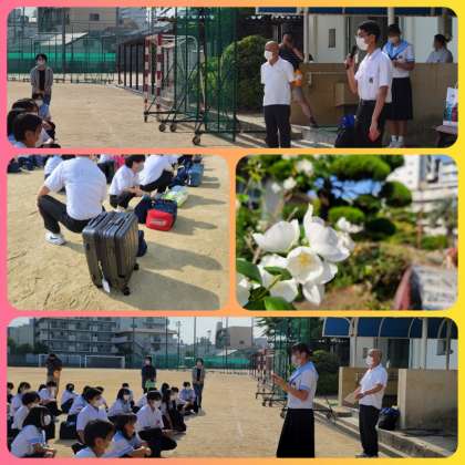 快晴の穏やかな天候のなか、運動場で出発式を行いました。