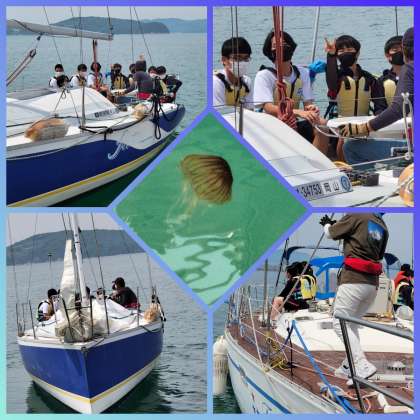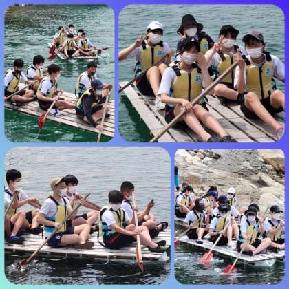 自力で瀬戸内へ出港。その手段は『いかだ』。『だいじょぶかな!』そんな不安も束の間、クラゲがゆったり泳ぐ波穏やかな水面は安心そのもの。余裕の笑顔です。