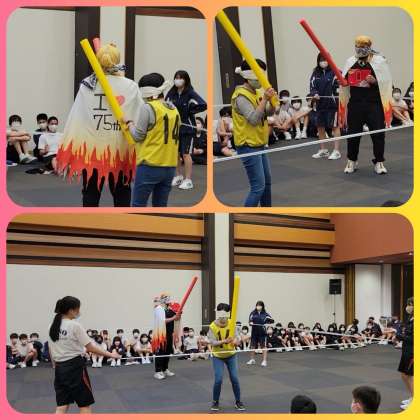75期生のマントを身につけた謎の金髪選手が登場し、三組担任と戦います。