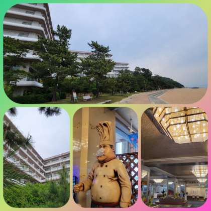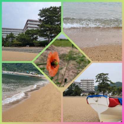 二日目の朝、外は少しひんやりしています。ホテル前はきれいな砂浜が広がり、誰もいない砂浜に穏やかな瀬戸内の波の音だけが聴こえてきます。