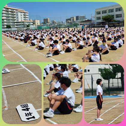 6月10日の体育大会に向けて、全校生徒による練習が行われています。