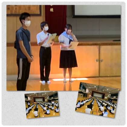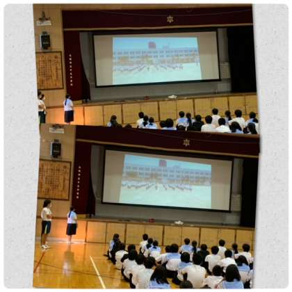 昨日の体育大会全体練習の行進ビデオを観賞しました。