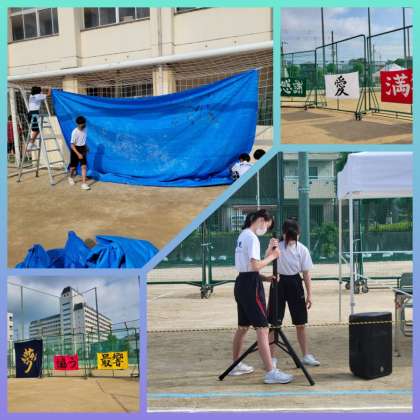 早くから教員や関係生徒が準備を行っています。昨日の準備に加えて、放送設備や応援旗、救護等、入念に準備を行っております。
