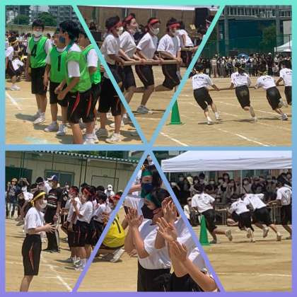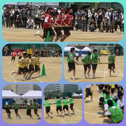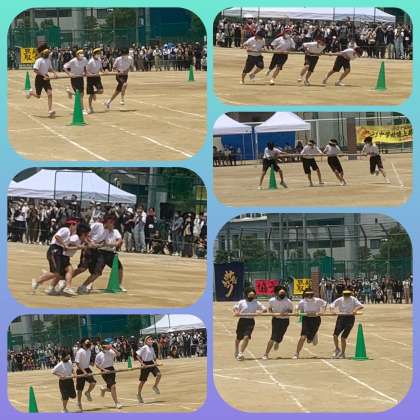 四人一組で一本の竹棒抱えて走ります。四人の走力には差がありますが、そこは各学級内での四人の組み合わせや並び順など、独自の作戦が大切。