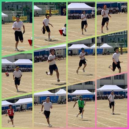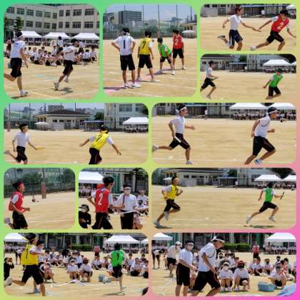 上級生の走りには、スピードだけでなく、バトンパスの技術が伴い、スピードを落とすことなくトラックを駆け抜けていきます。格好いいですね!