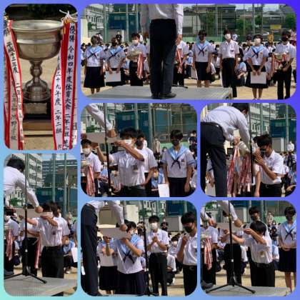 全校集会、表彰伝達式と体育大会表彰を行いました。