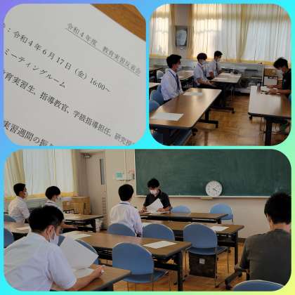 三週間の教育実習を終え、実習生と関係する教員たちによる反省会が行われました。