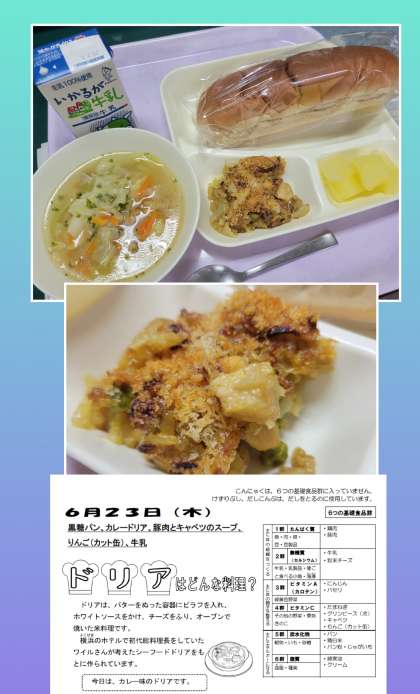 大きな鶏肉が入り、玉ねぎを加えて炒めたところへカレールウとチーズをふりかけ、蒸し焼き。香辛料やチーズの香り、食欲がそそられます。パンとの相性もよく、美味しかったですね。