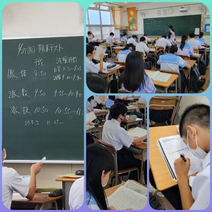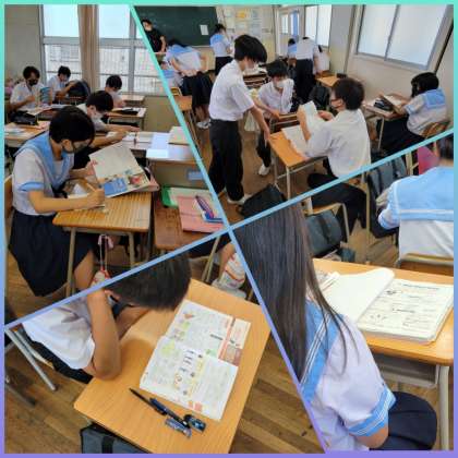一時間目は保健体育です。9時10分の開始まで、テスト対策自習時間を確保しています。