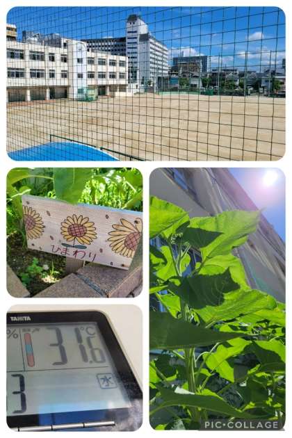 6月29日(水)快晴。職員室前廊下の温度計が9時現在31度を示しています。過去最も早い梅雨明けが発表され本格的な夏到来です。