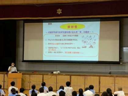 生徒たちに直接語りかけることにより、非行の重大さに対する理解や犯罪に巻き込まれないための行動などを分かりやすく説明していただきました。