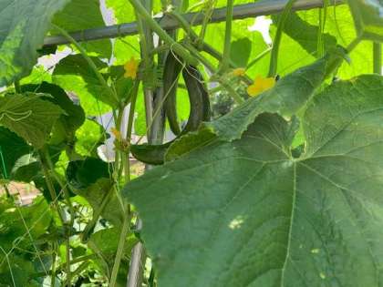 形のいいスーパーで販売しているものと変わらない立派なキュウリが育っています。