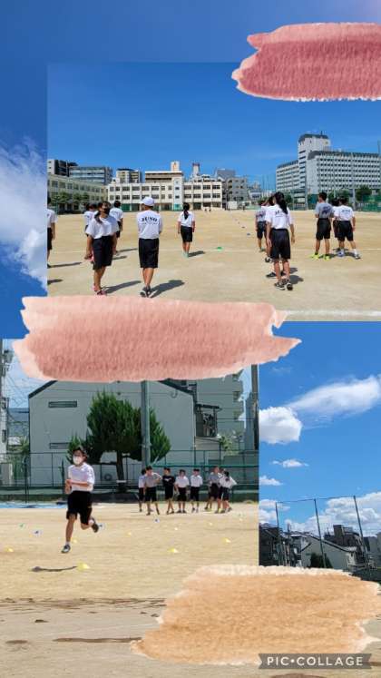 運動場は朝から気温が上がり、既に10時30分現在、職員室前温度計は34.5度を示していました。