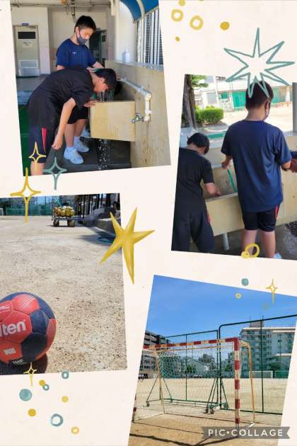 部活動では、小まめに休憩と水分補給を行いながら練習に励んでいます。水道を頭からかけて気持ち良さそうにしながら、練習に打ち込む生徒たちの姿もありました。