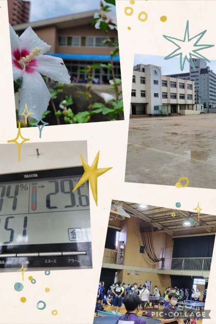 卓球大会二日目、雨の影響もあり廊下の温度計では29度を示しています。昨日までとは違って少ししのぎやすくなっています。