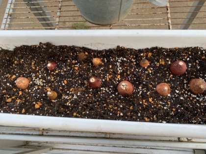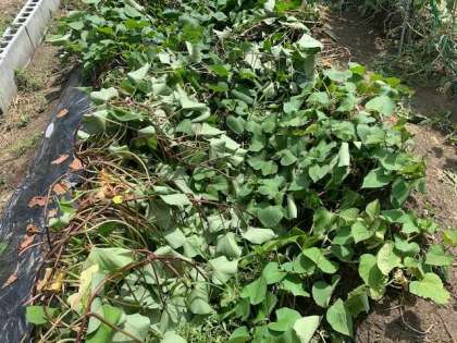 地中でイモが育っているかは確認できてませんが、水やり、ツル返しなどの作業は続きます。