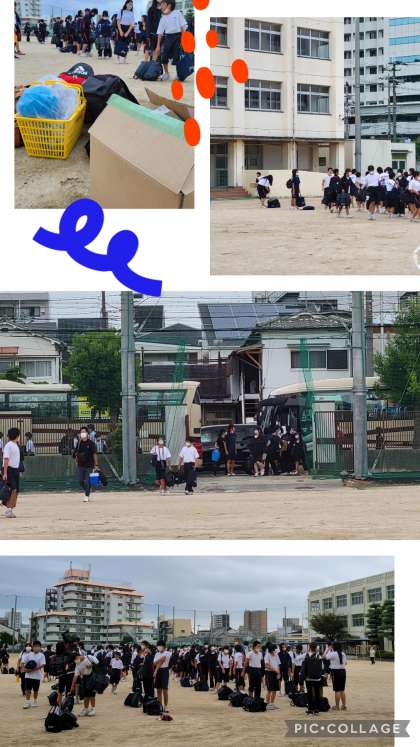 16時25分、一年生が学校へ到着しました。これから解散式を行います。