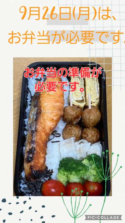 よってお弁当が必要です。三連休明けですので、お忘れないようご準備ください。