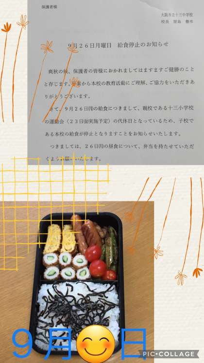 三連休明け、9月26日(月)は【お弁当等】をご準備ください。