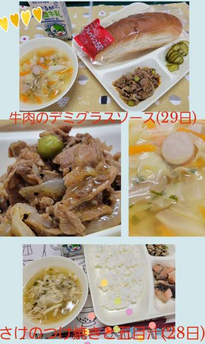 本日29日(木)は、牛肉のデミグラスソースでした。