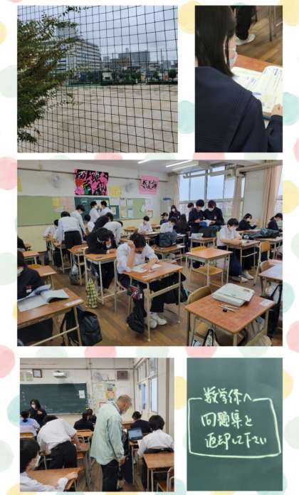 三年生の休み時間、色んな方法でテストに向けて出題内容を確認しています。