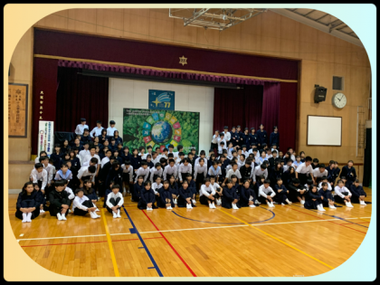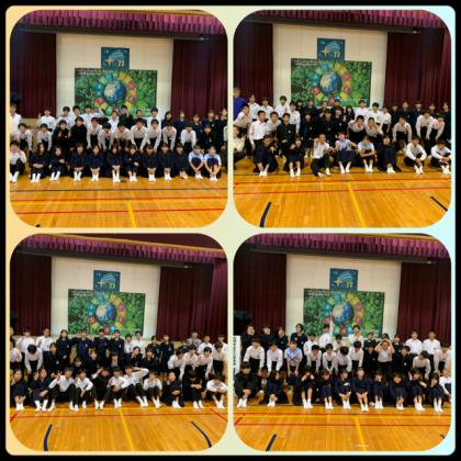 最後に学年全体写真と学級写真を撮影しました。ここでもいい顔してました。