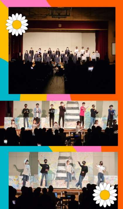 華やかな演劇を一層盛り立てる映像表現、その上、ダンスや合唱がさらに舞台を盛り上げていました。