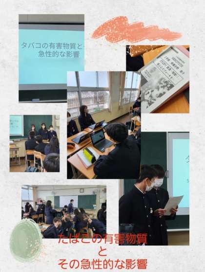 三年生教室では『タバコの害』について、主体的・協働的に取り組む保健授業が行われていました。
