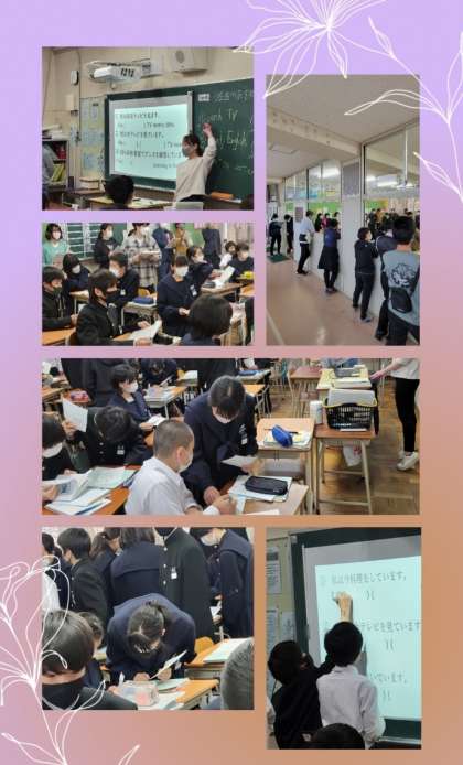 6時間目、1年生2組の教室で『一年生英 語 研究授業』を行いました。