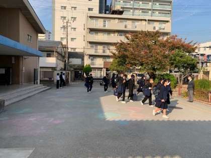 写真は朝の登校風景