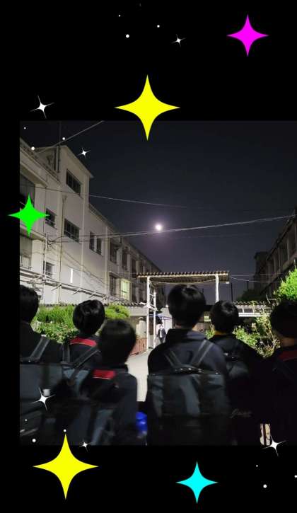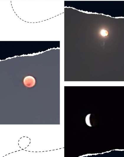 18時22分、夜空に浮かんだスーパームーン皆既月食。部活動帰りのバスケットボール部員と一緒に442年ぶりの幻想的な天体ショーに魅了されました。