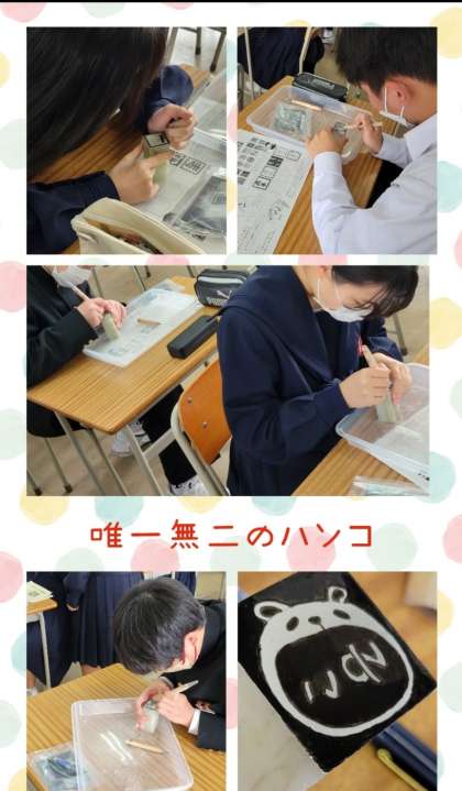 中にはたいへん可愛い印面デザインを思いつく生徒もいて、笑顔がこぼれます。