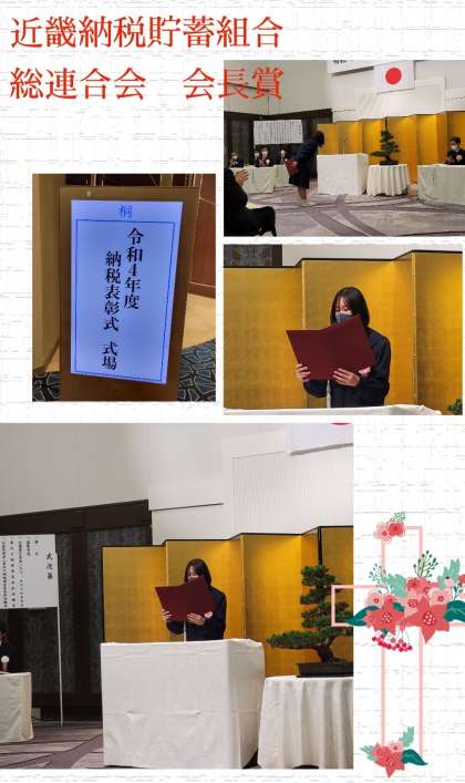 このたび、本校三年生が大阪国税局・東淀川自主納税貯蓄組合連合会に応募された1561編の中から見事『近畿納税貯蓄組合総連合会 会長賞』を受賞しました。