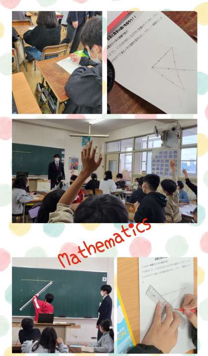 十三小学校では中学校三年生の数学科教員による出前授業です。