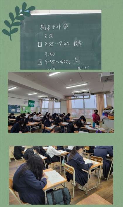 今日はテスト最終日です。テストから解放され午後は、部活動等、楽しい時間が待っていますが、やらなければならないことはきちんとやりきりましょう。