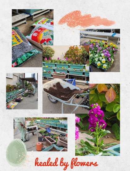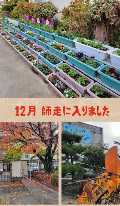 管理作業員さんがプランターの整備を行いました。冬の花壇を彩る代表的な花、パンジー、ビオラ、他にもシクラメン、ハボタン、ストックなど、校門からのアプローチに季節の花が咲き誇っています。