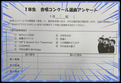 2月開催予定合唱コンクールの取り組みが始まりました。