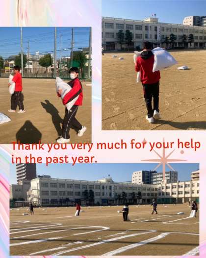 グランド整備&にがりまきを陸上部、ラグビー部で行いました。日頃、お世話になっているグランドに感謝を込めて整備をしました。