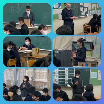 6限 各学級百人一首のプレ大会の様子
